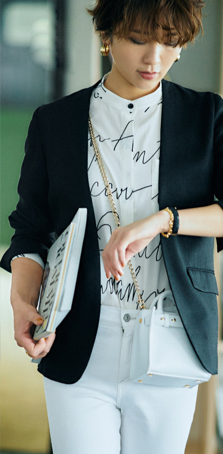 如果觉得夏天比较热,想要搭配黑色或白色T恤的话,那就下半身选择特别的款式,如果一身都没有特色,虽然是黑白,那也完全没有了高贵冷艳的气质。